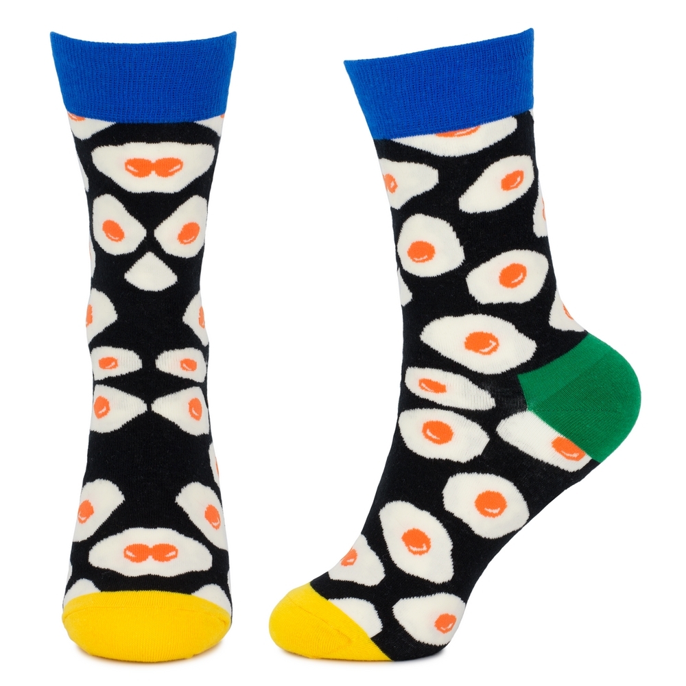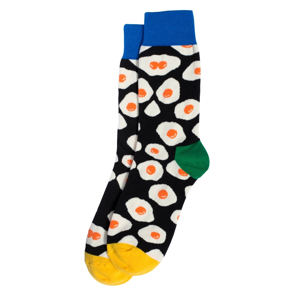 The Fried Egg socks are a playful declaration of individuality, a sartorial wink to the everyday ritual of breakfast.