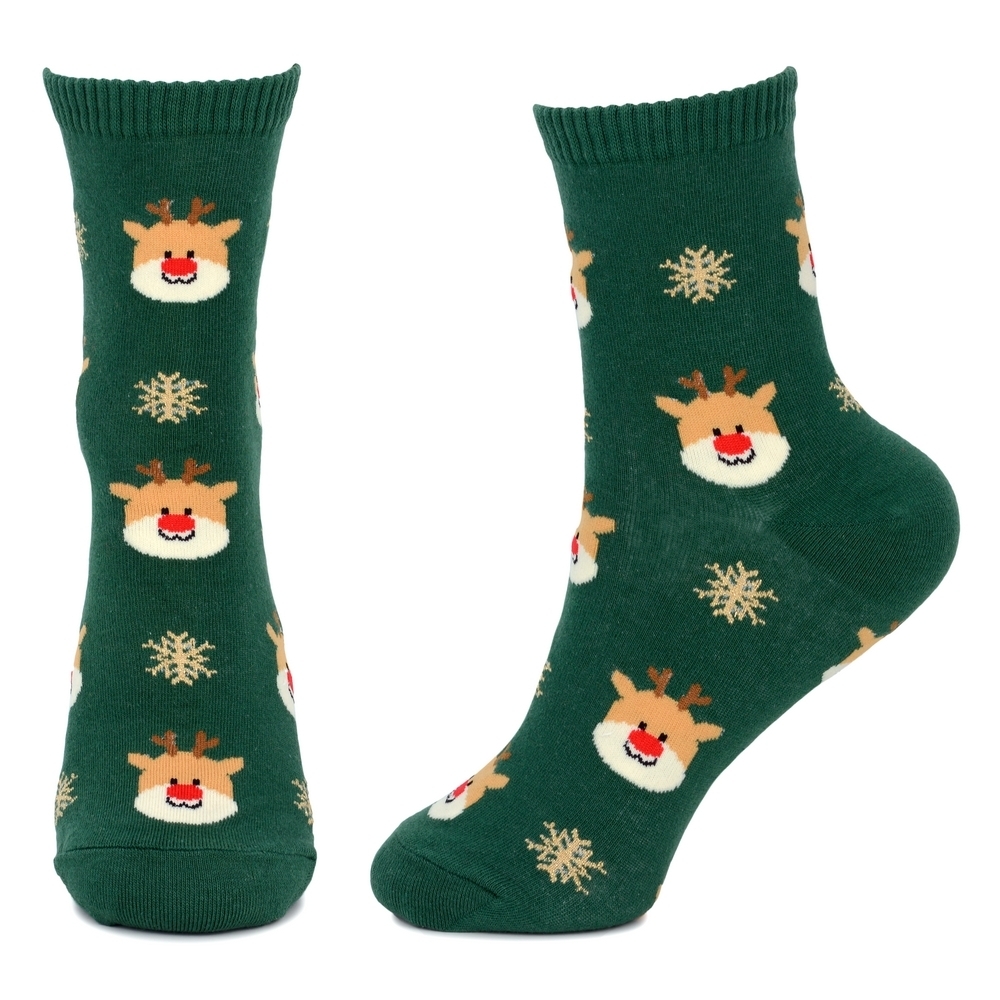 Socks cotton & spandex reindeer icon green