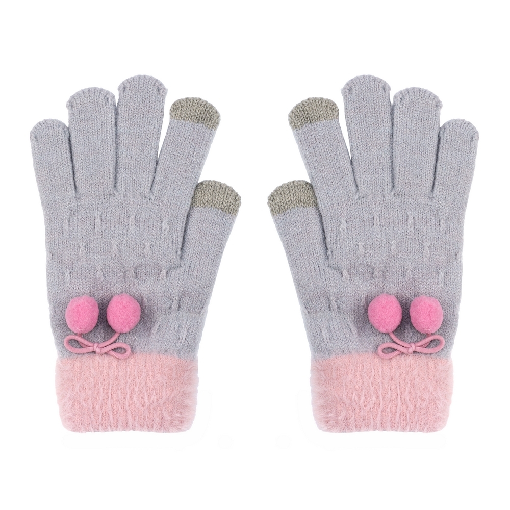 Gloves Pompom Bow Made With Acrylic