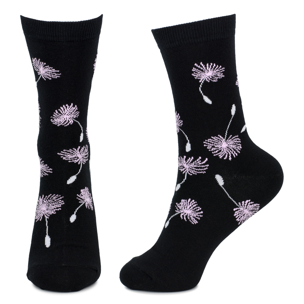 Woven from a luxurious blend of cotton and spandex, their fine gauge knit offers a caressingly soft embrace for the foot. The design features a scattering of dandelion seed heads, some still rooted, others caught mid-flight, rendered in a gentle palette that evokes sun-drenched meadows and soft breezes. Each fibre speaks of thoughtful craftsmanship, promising a smooth, breathable comfort that lasts throughout the day.