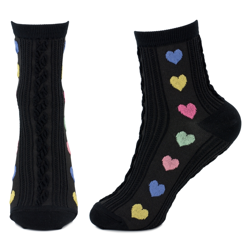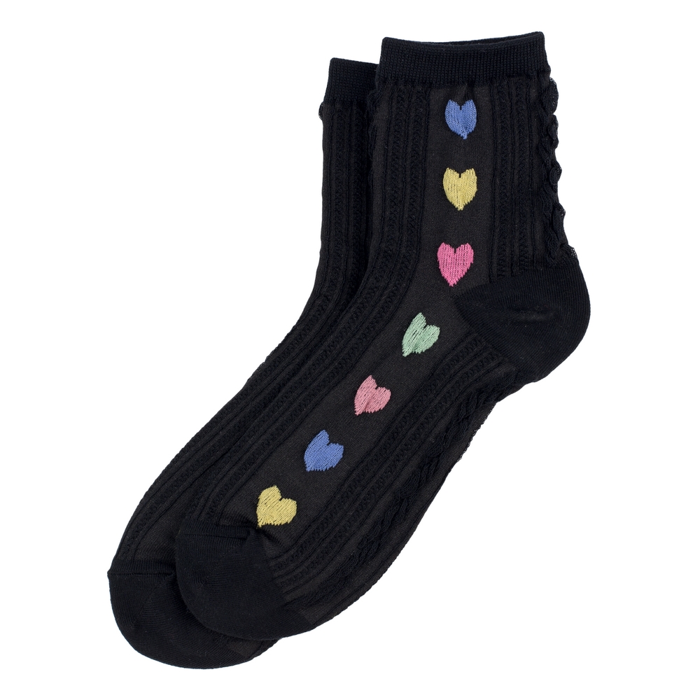 Be the first to review “Socks cotton & spandex soft cable knit hearts black”