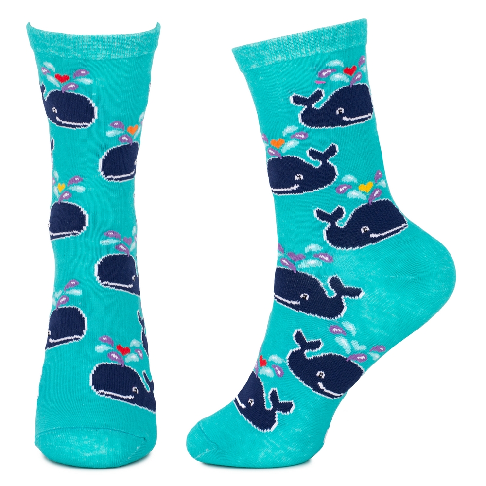 Crafted from a breathable cotton-spandex blend, they offer a gentle embrace for your feet, promising comfort that lasts from dawn till dusk. The design features a charming, stylised whale, rendered with an artistic hand, swimming amidst an imagined seascape. Each stitch speaks of a playful spirit, inviting a moment of quiet joy with every wear, a subtle nod to the boundless wonder of marine life.