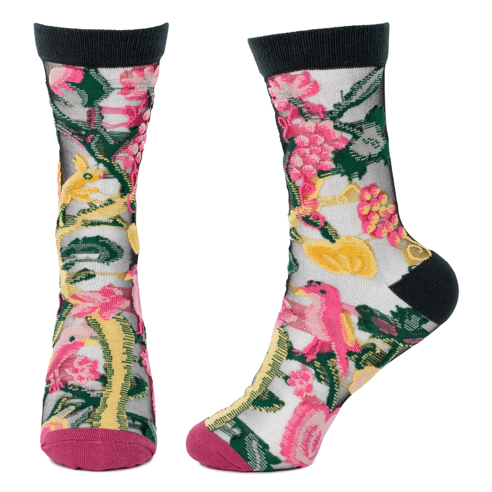 The Sheer Bird & Fruit socks are not merely an accessory; they are a miniature canvas, inviting a moment of quiet contemplation and refined artistry into your daily ensemble.