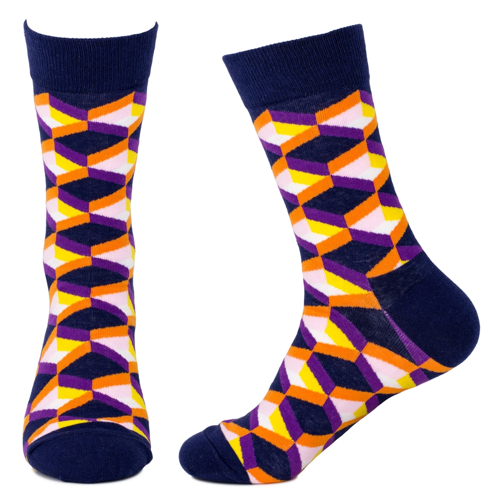 Be the first to review “Socks cotton & spandex gents retro optic diamond shape purple”
