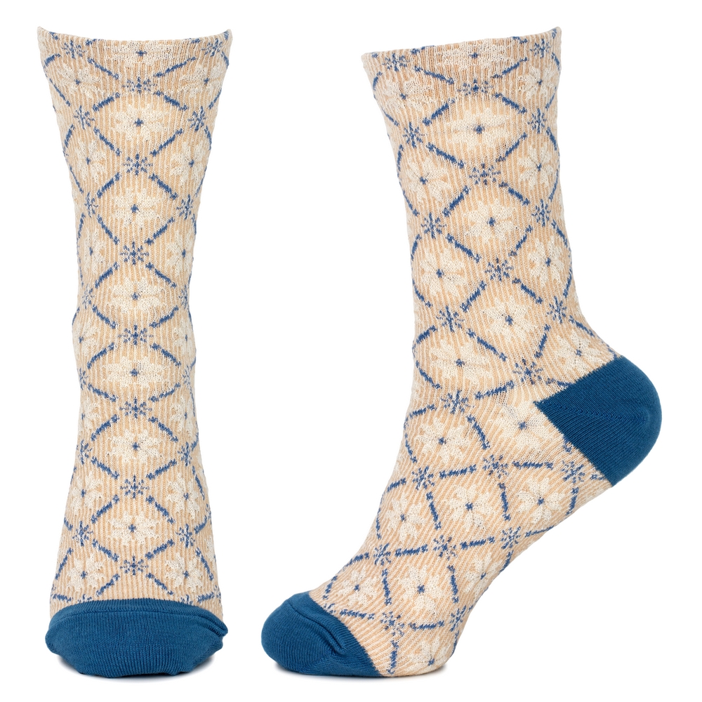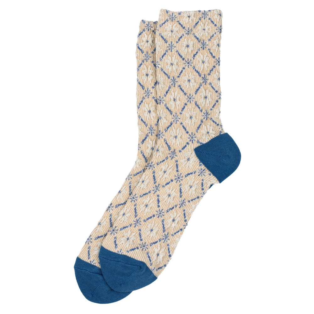 Socks cotton & spandex embossed arts & crafts motif blue & yellow