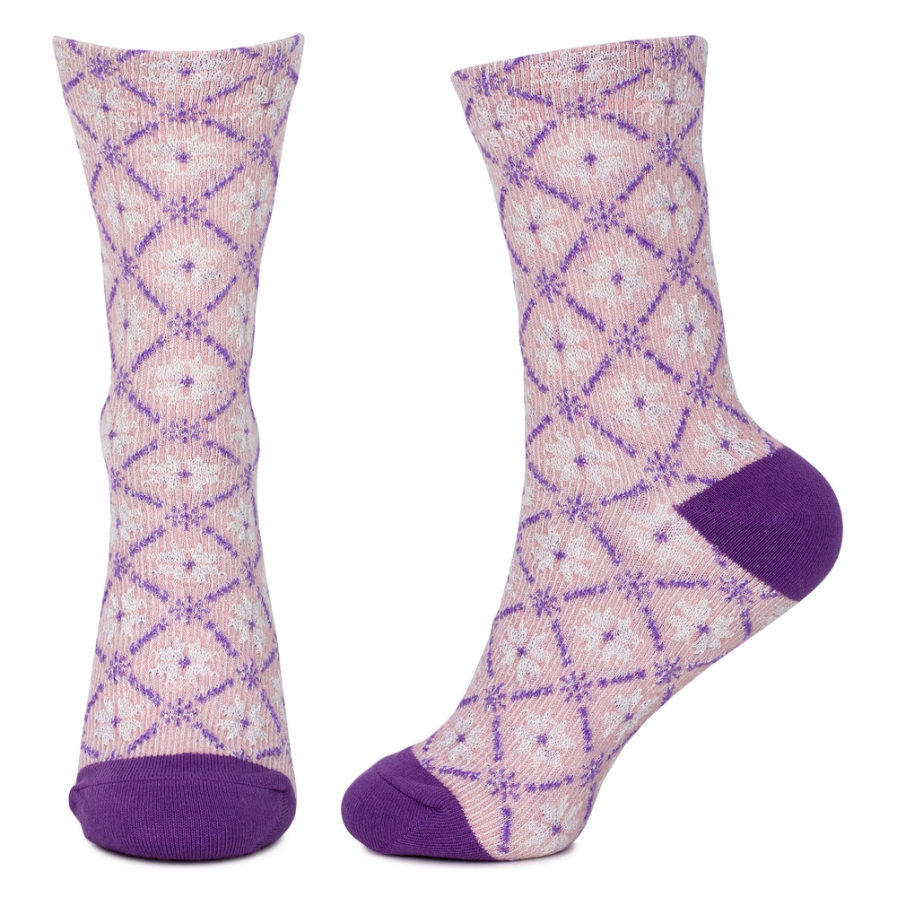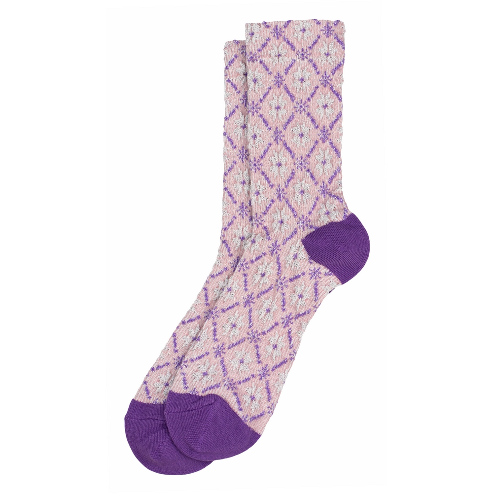 Socks cotton & spandex embossed arts & crafts motif purple & pink