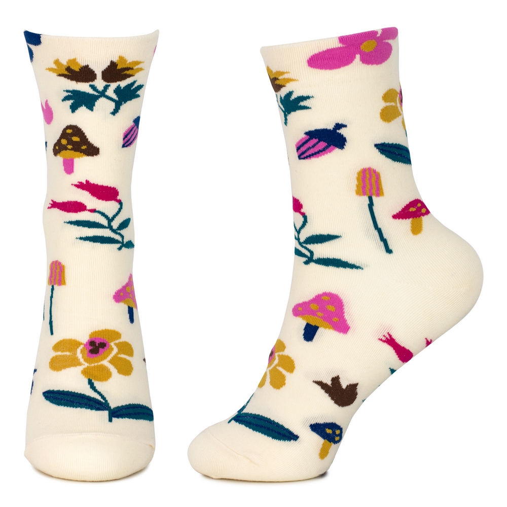 Socks cotton & spandex woodland fauna cream
