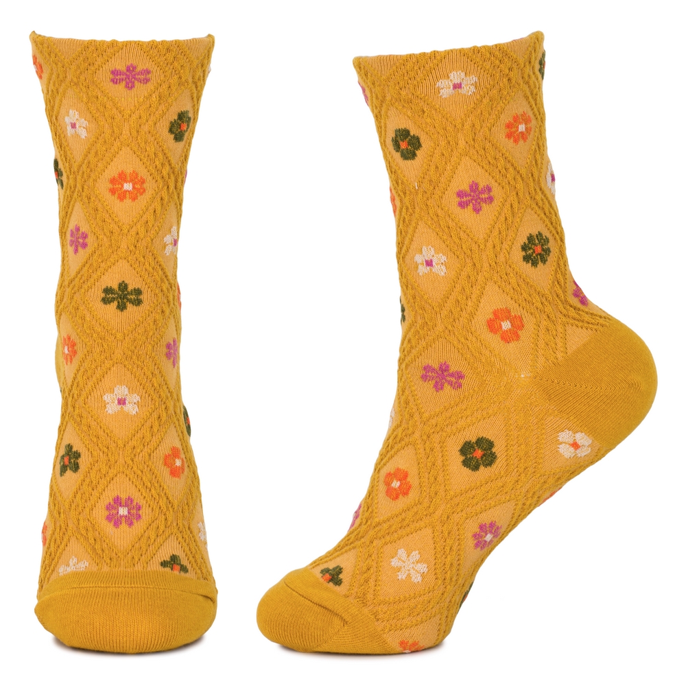 Let your feet bloomthese embossed floral socks in mustard yellow add a subtle botanical twist to everyday wear.