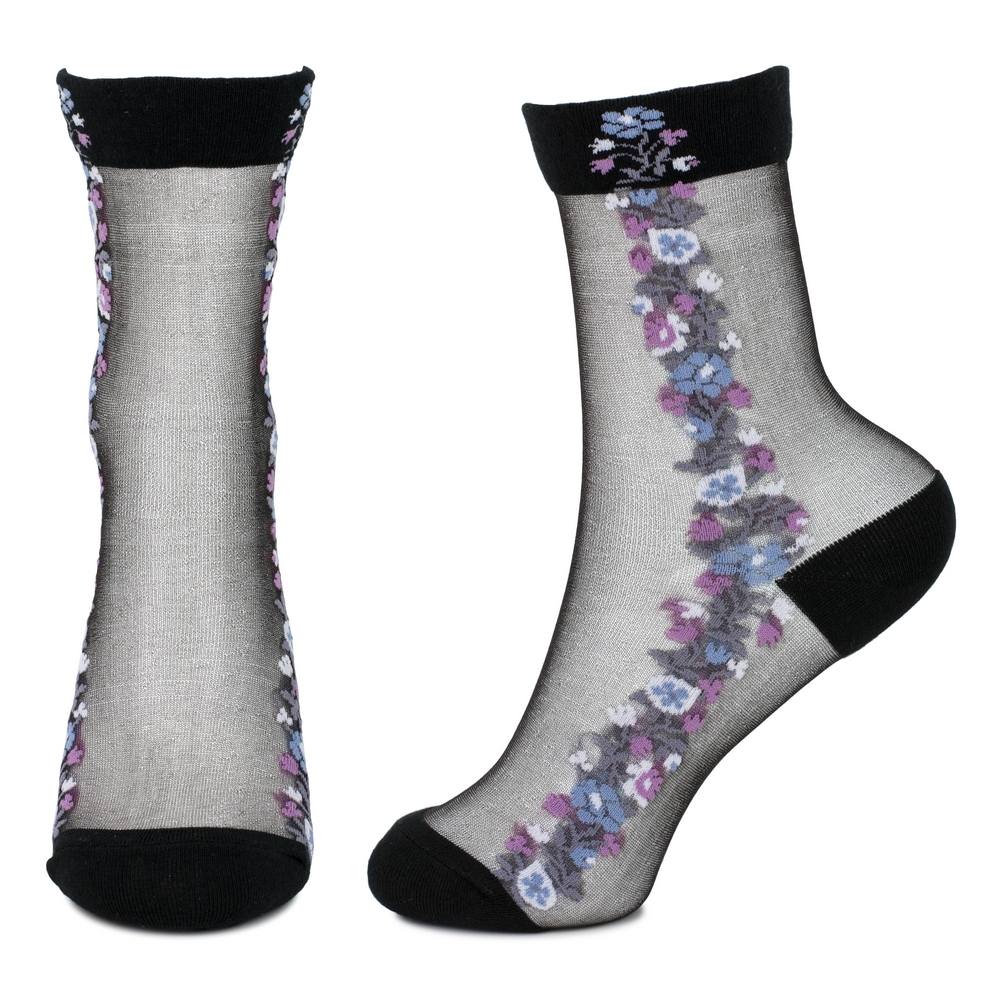 The Sheer Meadow Flower Line socks are an ode to the ephemeral beauty of a sun-drenched garden, captured in a whisper-light embrace for your feet.