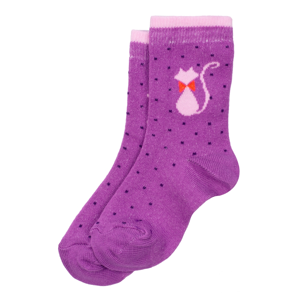 Socks cotton & spandex kids fancy feline age 3-5 purple