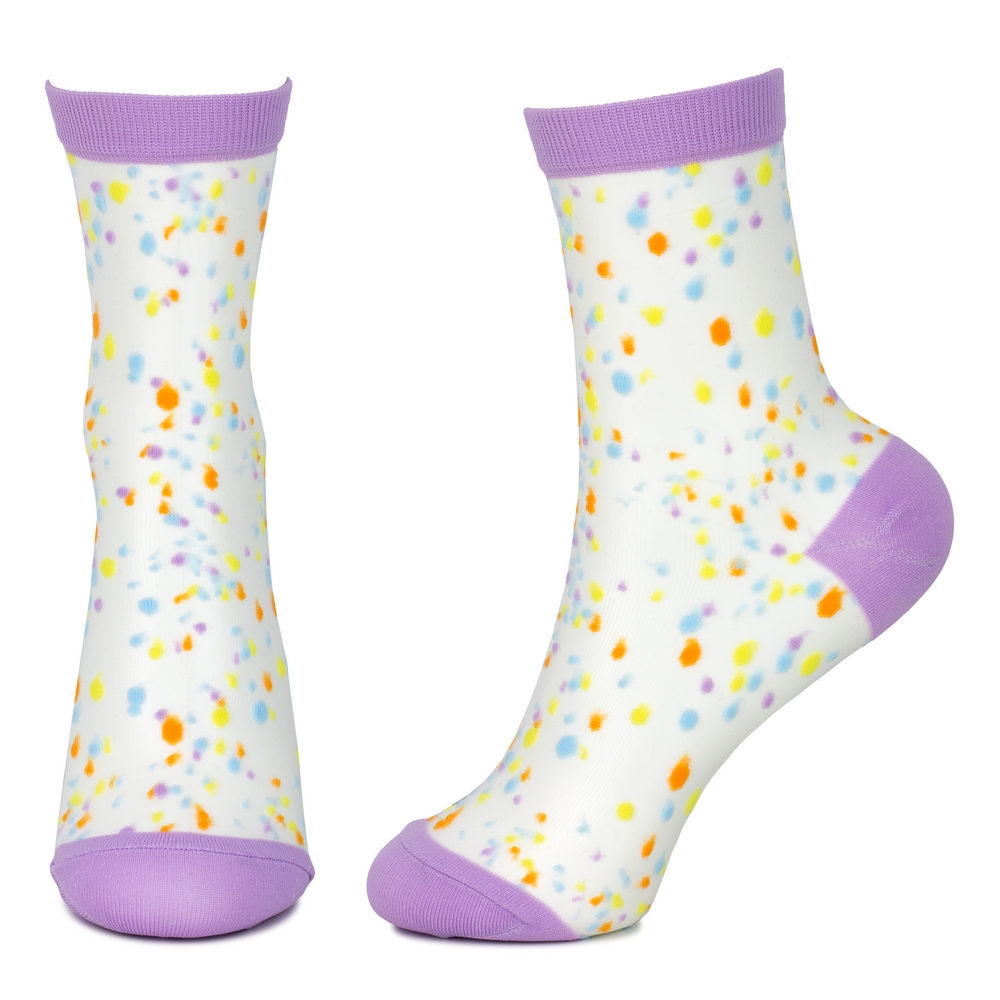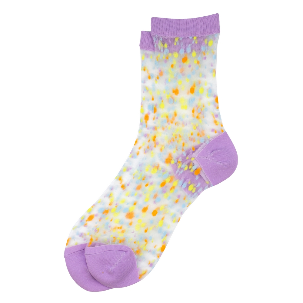 Breezy and beautiful—these lilac sheer socks sparkle softly with scattered charm.