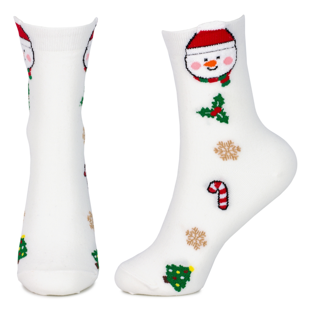 Socks cotton & spandex pom pom snowman white