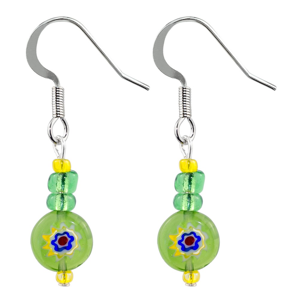 Drop Earring Sweet Flower Made With Millefiori Glass