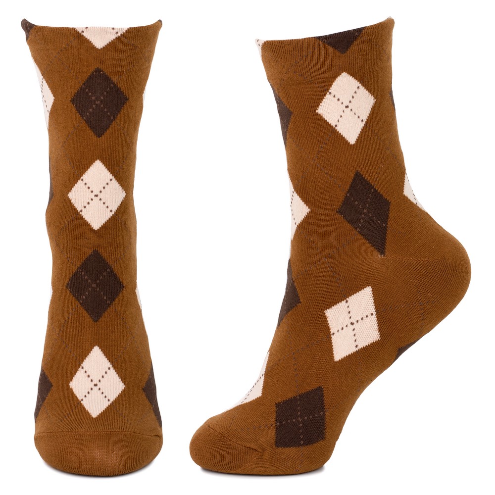 Socks cotton & spandex modern argyle brown