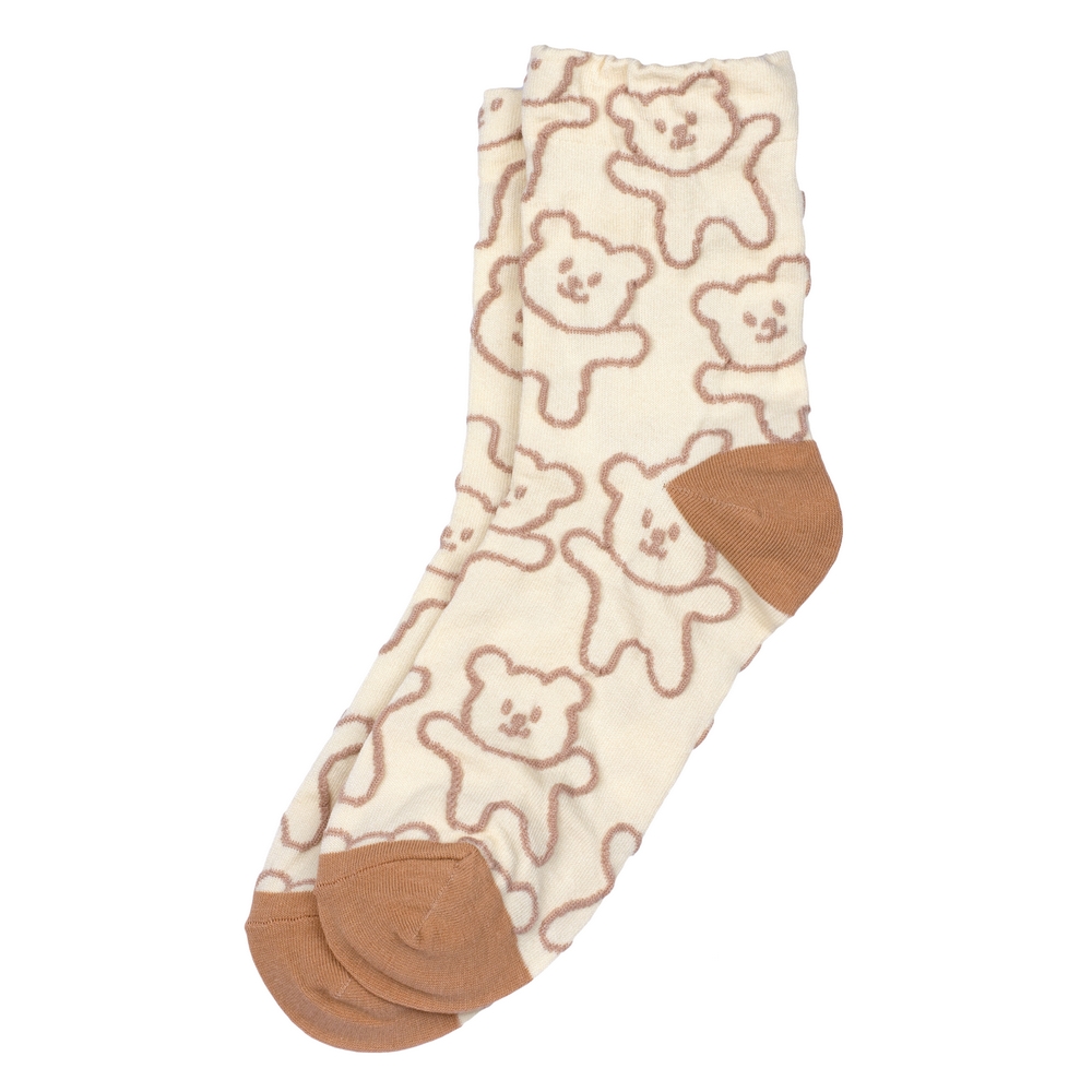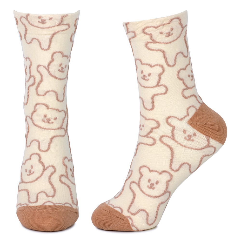 Crafted from a breathable cotton-spandex blend, they offer a gentle embrace for the foot, ensuring comfort that lasts throughout the day. The fine knit ensures a smooth, comfortable fit, while the charming teddy bear motif, rendered with a playful hand, peeks out with an endearing cheerfulness. Each pair is a miniature canvas, presenting a sweet, familiar face that evokes a sense of nostalgic warmth and lightheartedness. The assorted designs mean each pair holds its own unique character, a tiny narrative for your feet.