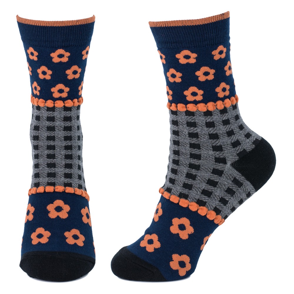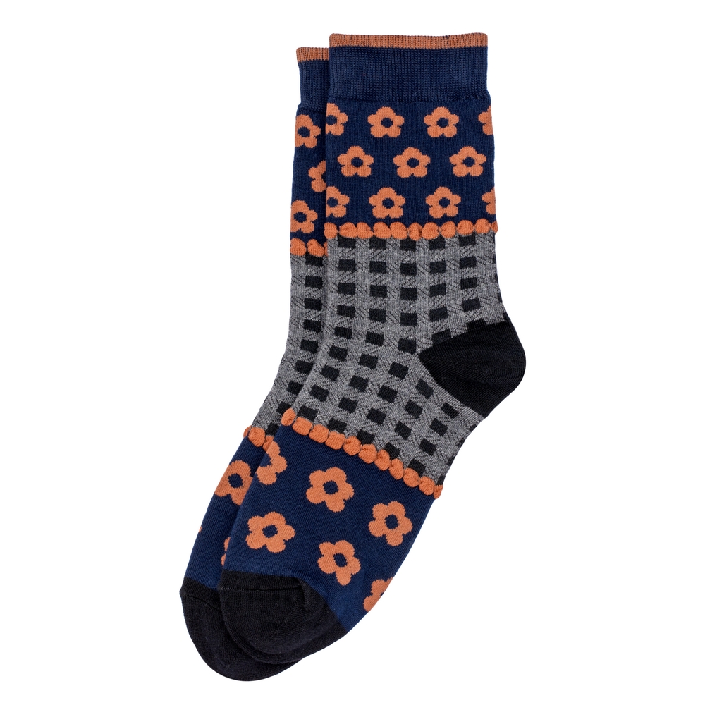 Socks cotton & spandex artsy folk navy blue