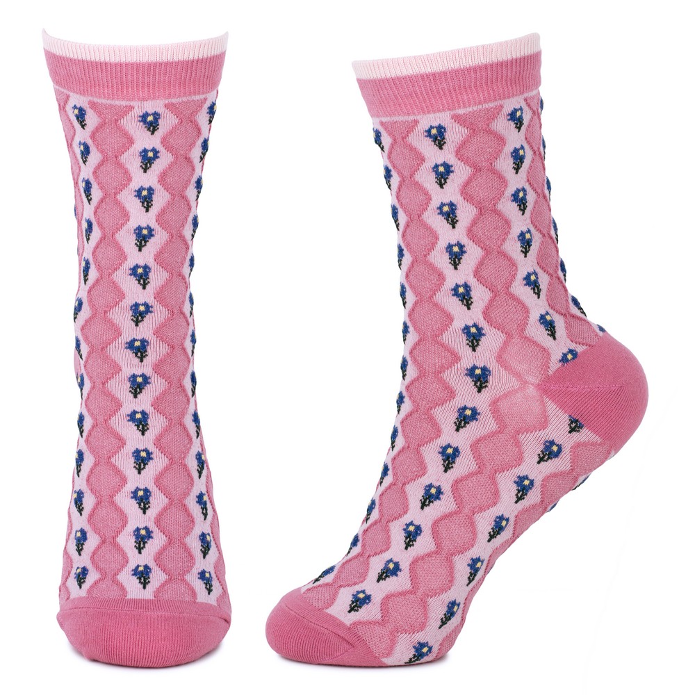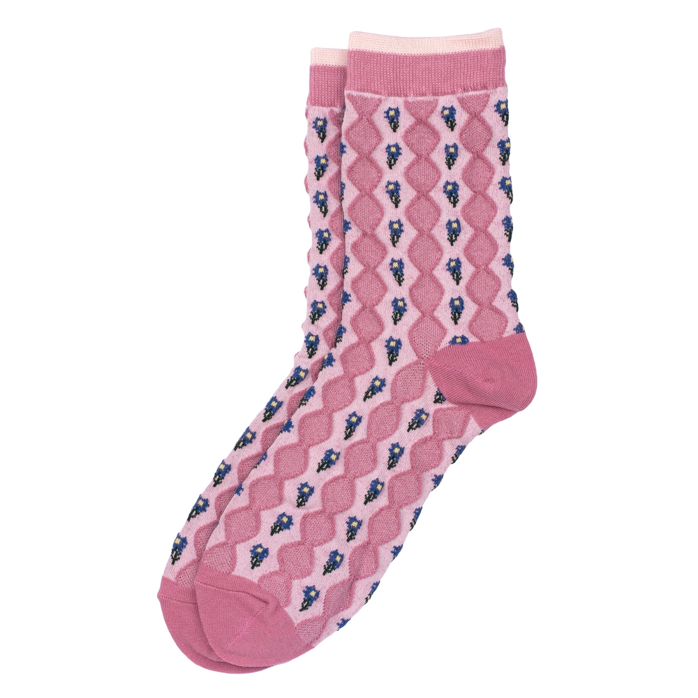 Socks cotton & spandex vintage waffle sprig pink