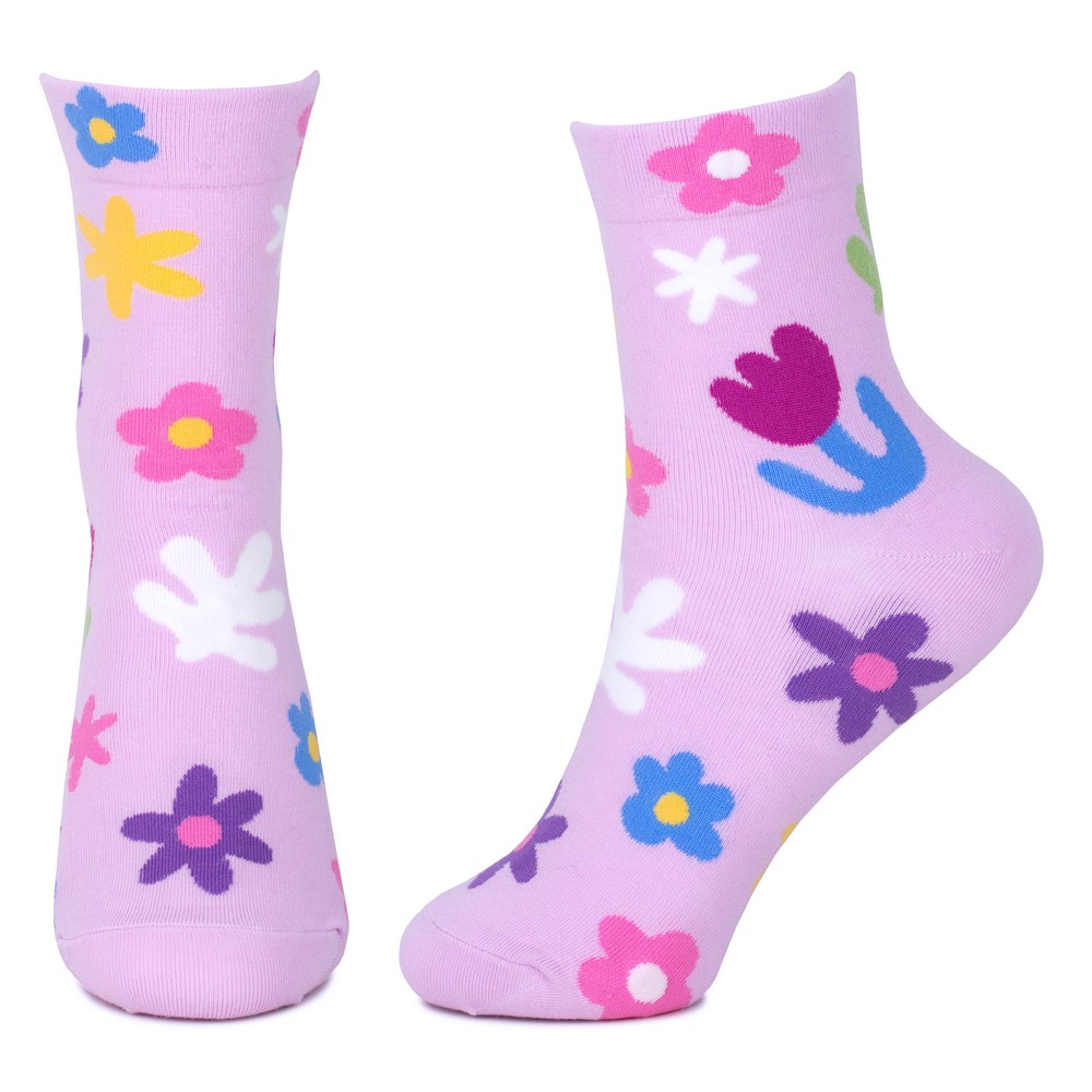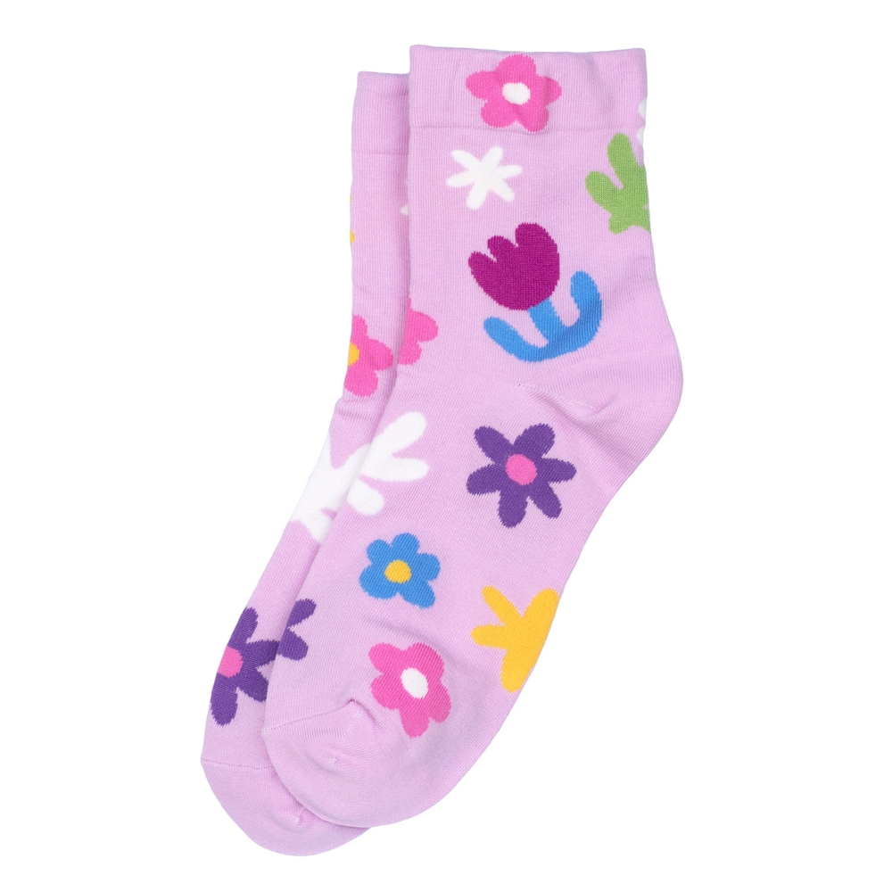 Socks cotton & spandex cut out flower lilac purple
