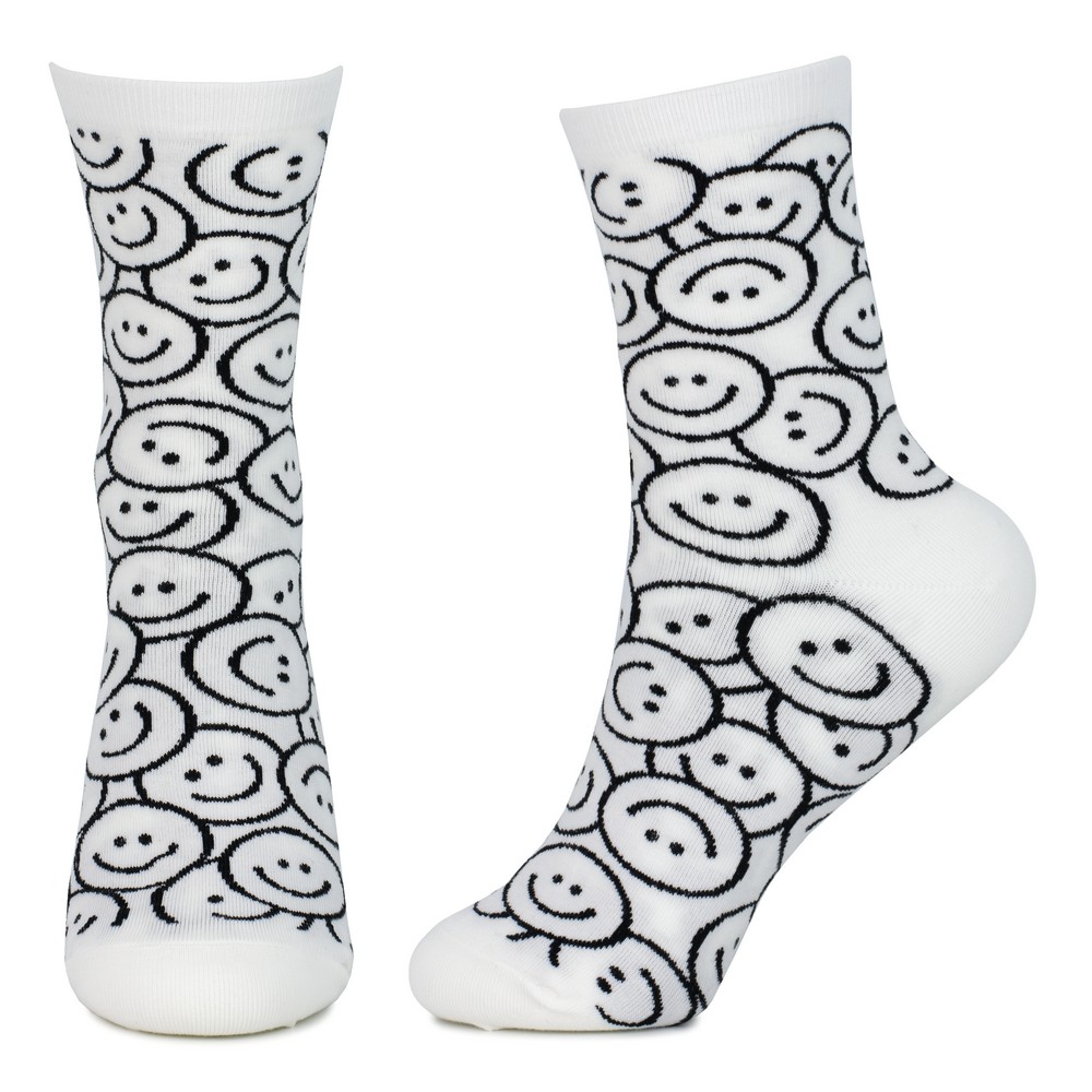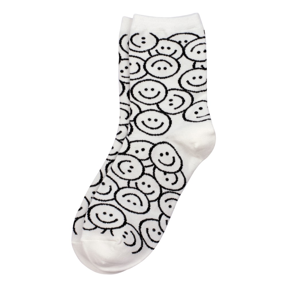 Socks cotton & spandex monochrome smiley white