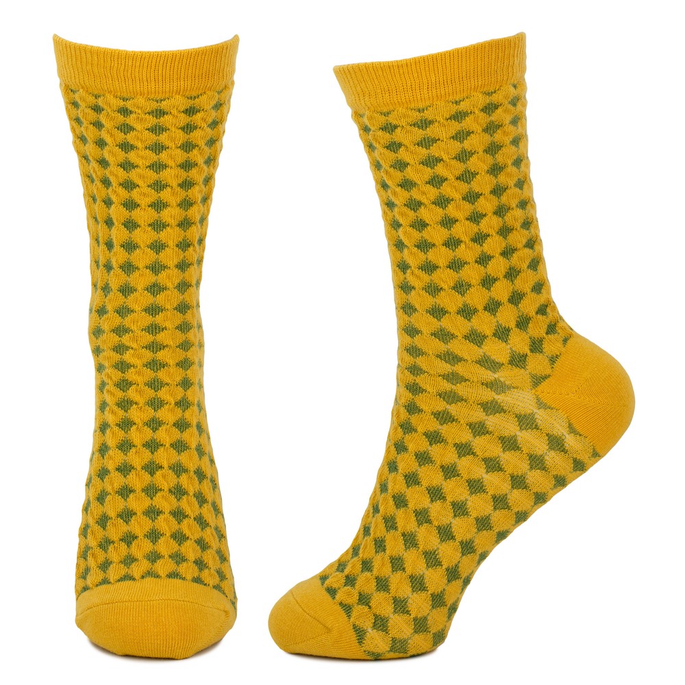 Socks cotton & spandex plain checker yellow