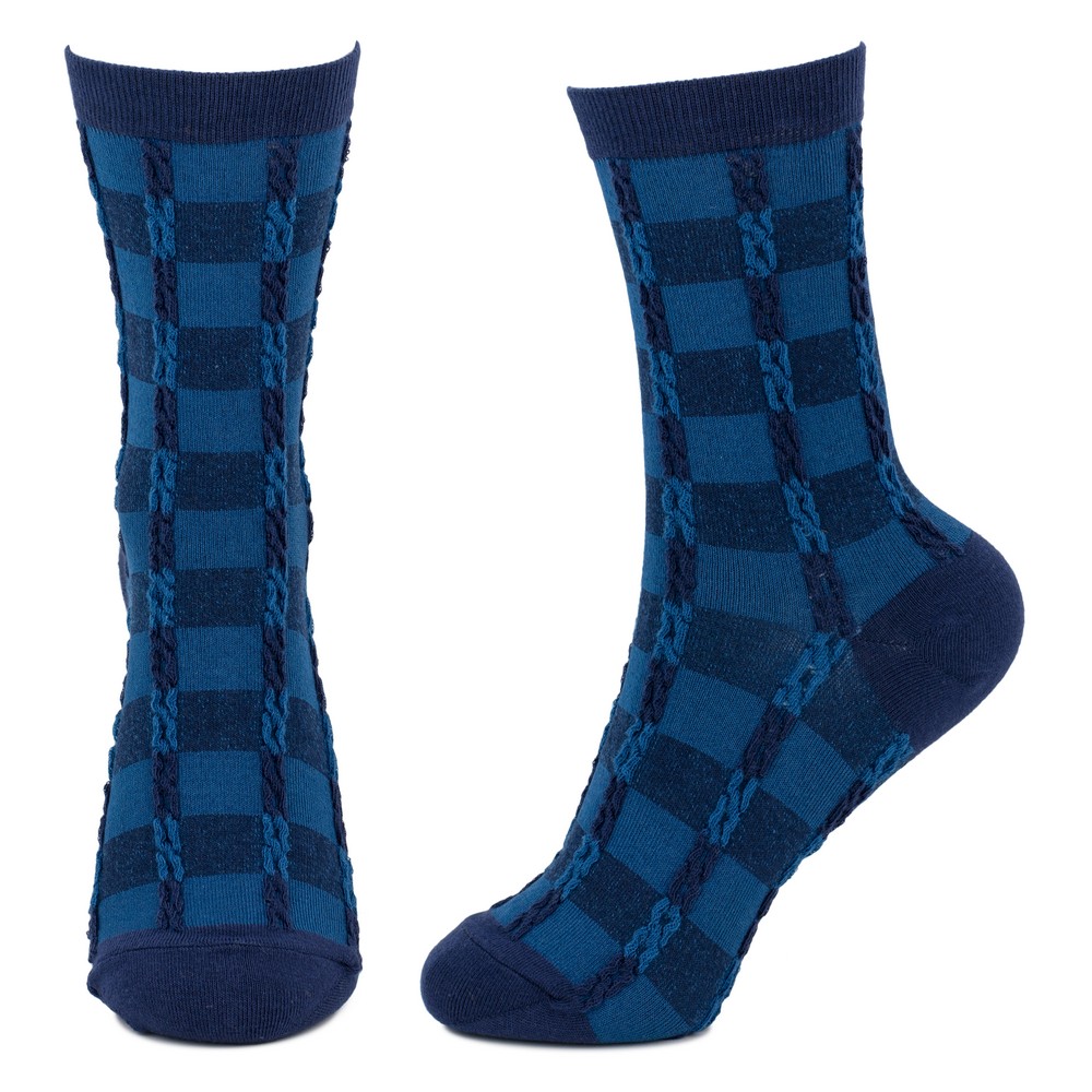Be the first to review “Socks cotton & spandex rolling checks navy blue”