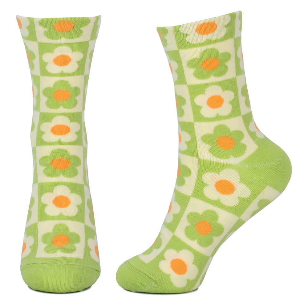 Be the first to review “Socks cotton & spandex flower checkerboard lime green”