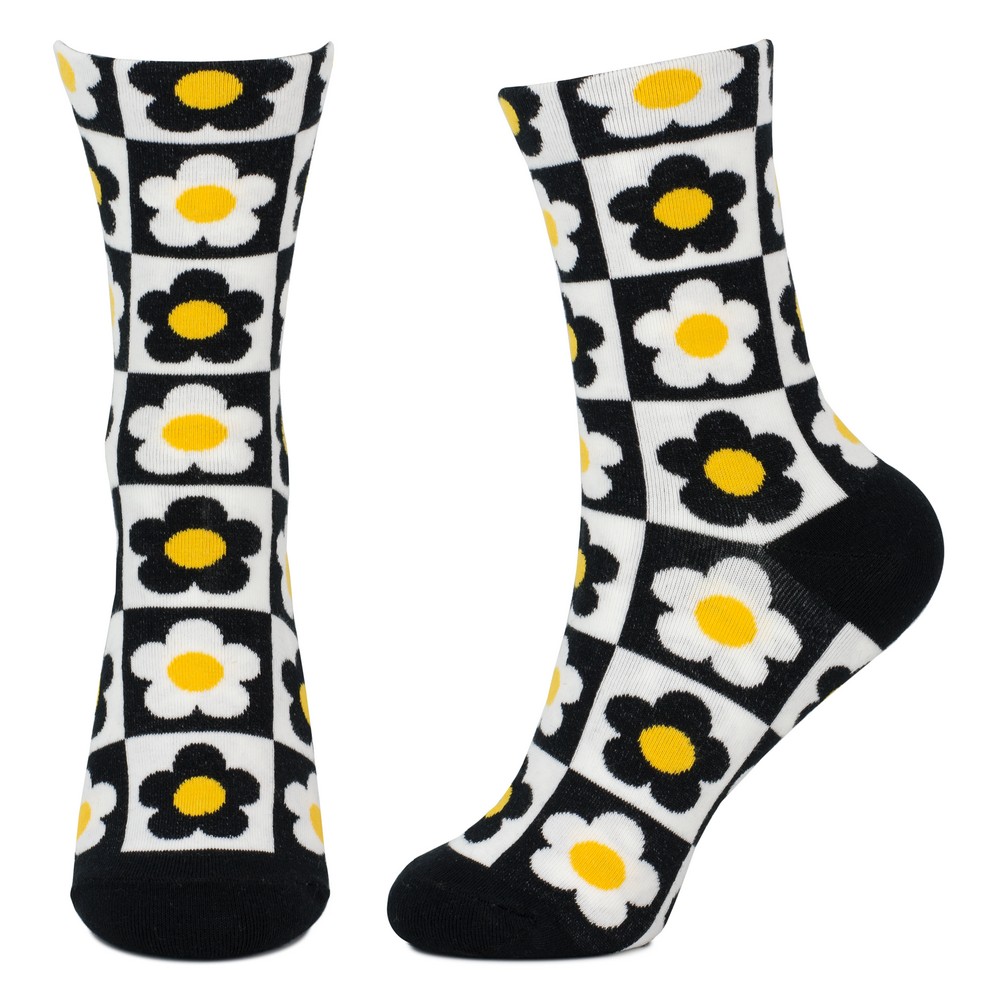 Be the first to review “Socks cotton & spandex flower checkerboard black”