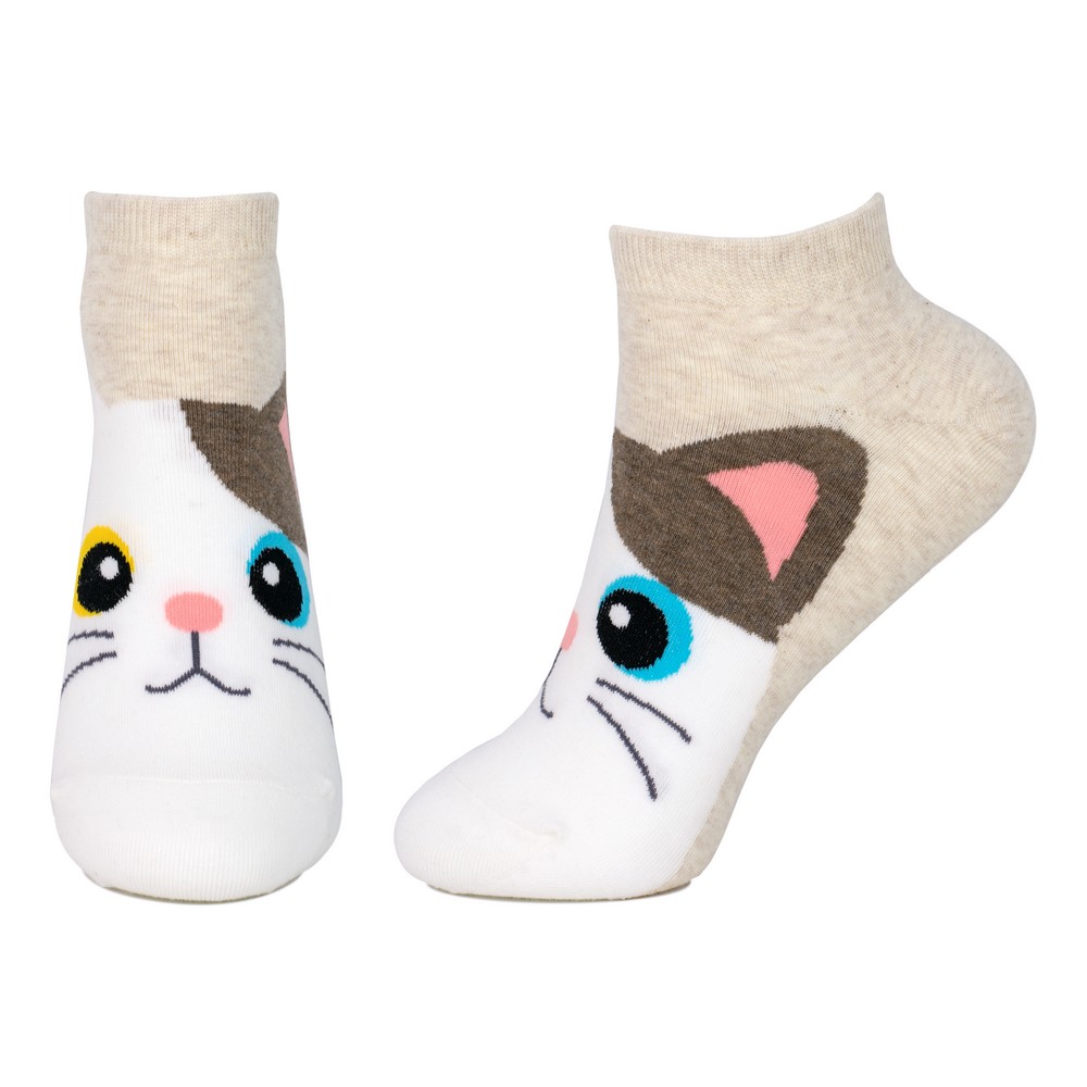 Socks cotton & spandex ankle playful cat beige