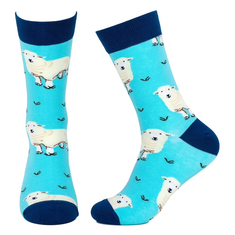 Socks cotton & spandex gents sheep herd blue