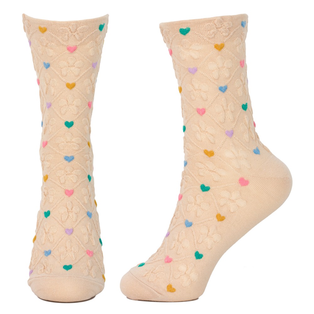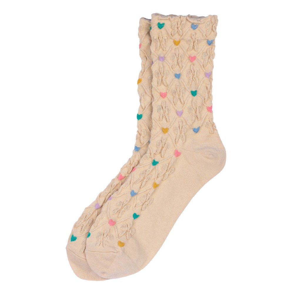 Socks cotton & spandex embossed hearts beige