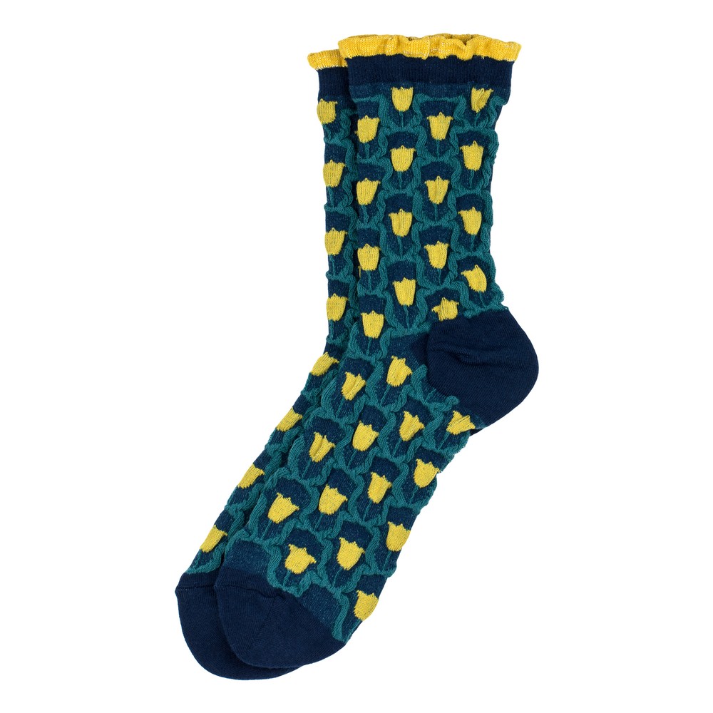 Petal power and subtle shimmerthese tulip socks flaunt a frilly charm thats sweet, stylish, and wonderfully whimsical.