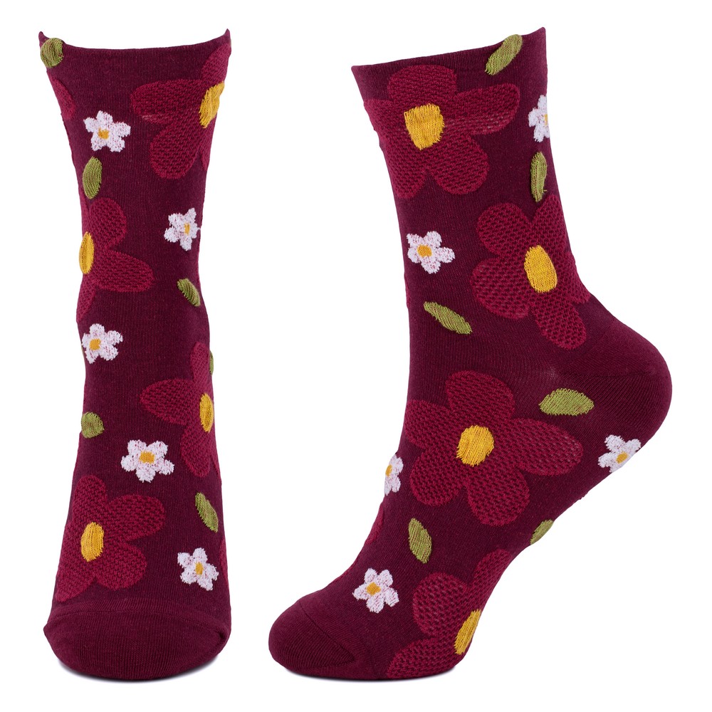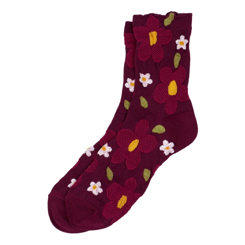 Be the first to review “Socks cotton & spandex mesh flower burgundy red”