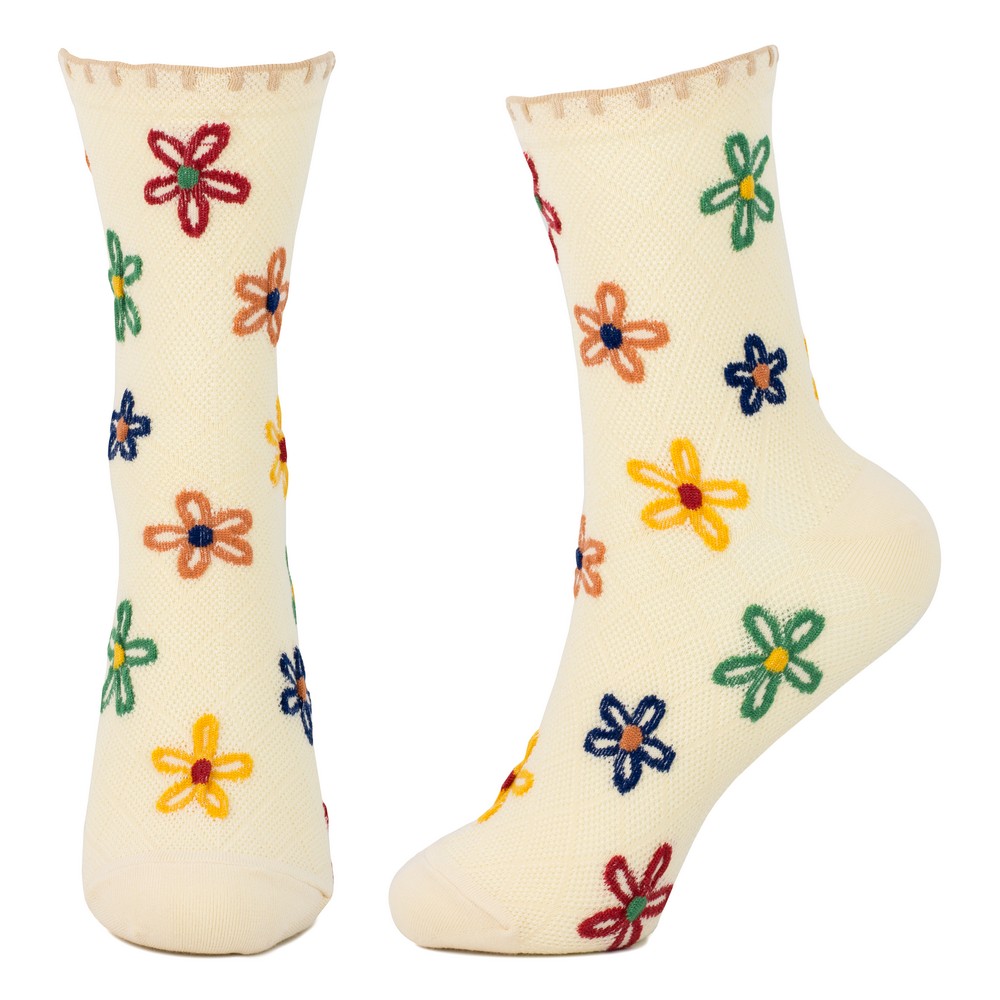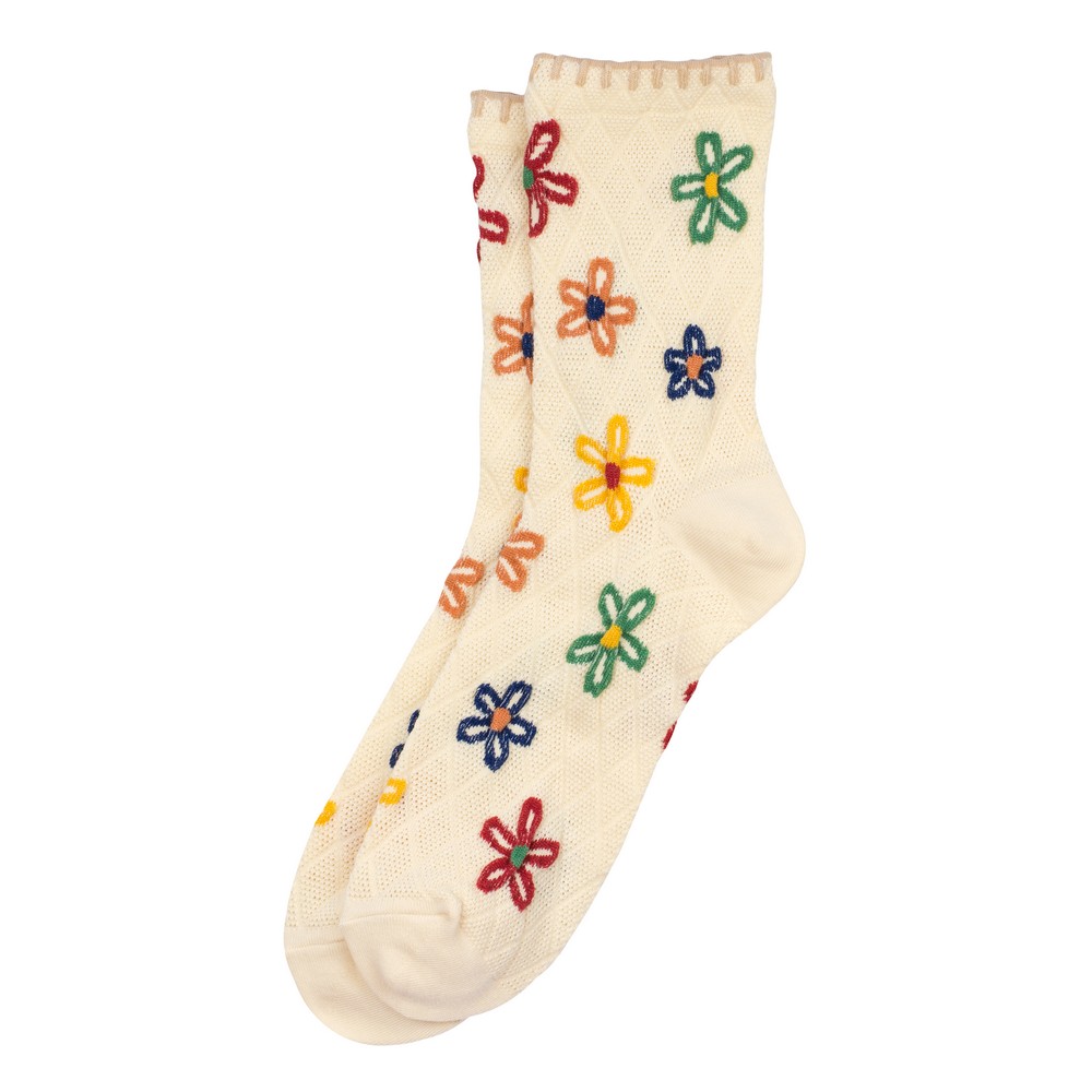 Socks cotton & spandex flower blanket stitch off-white
