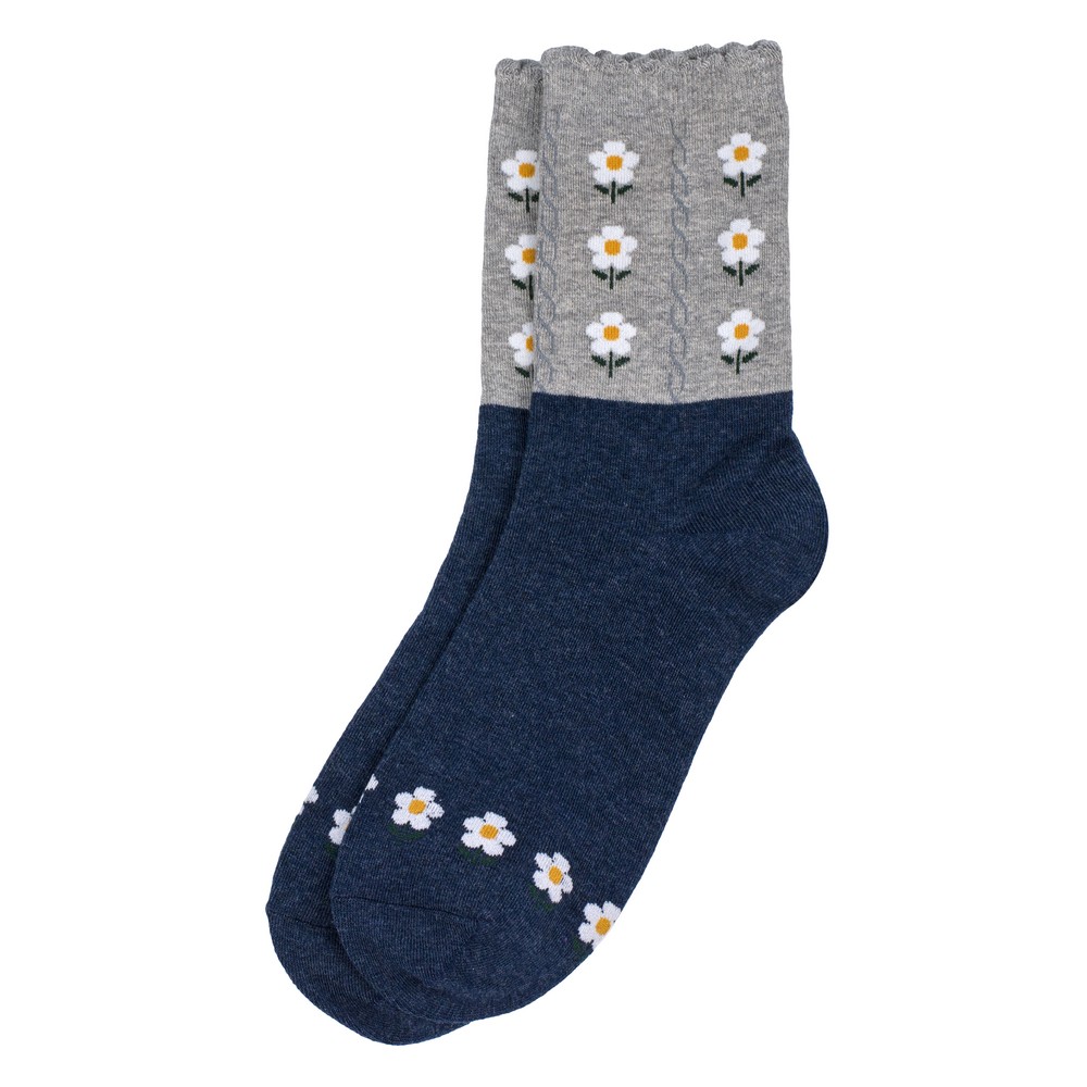 Socks cotton & spandex picot flower navy blue