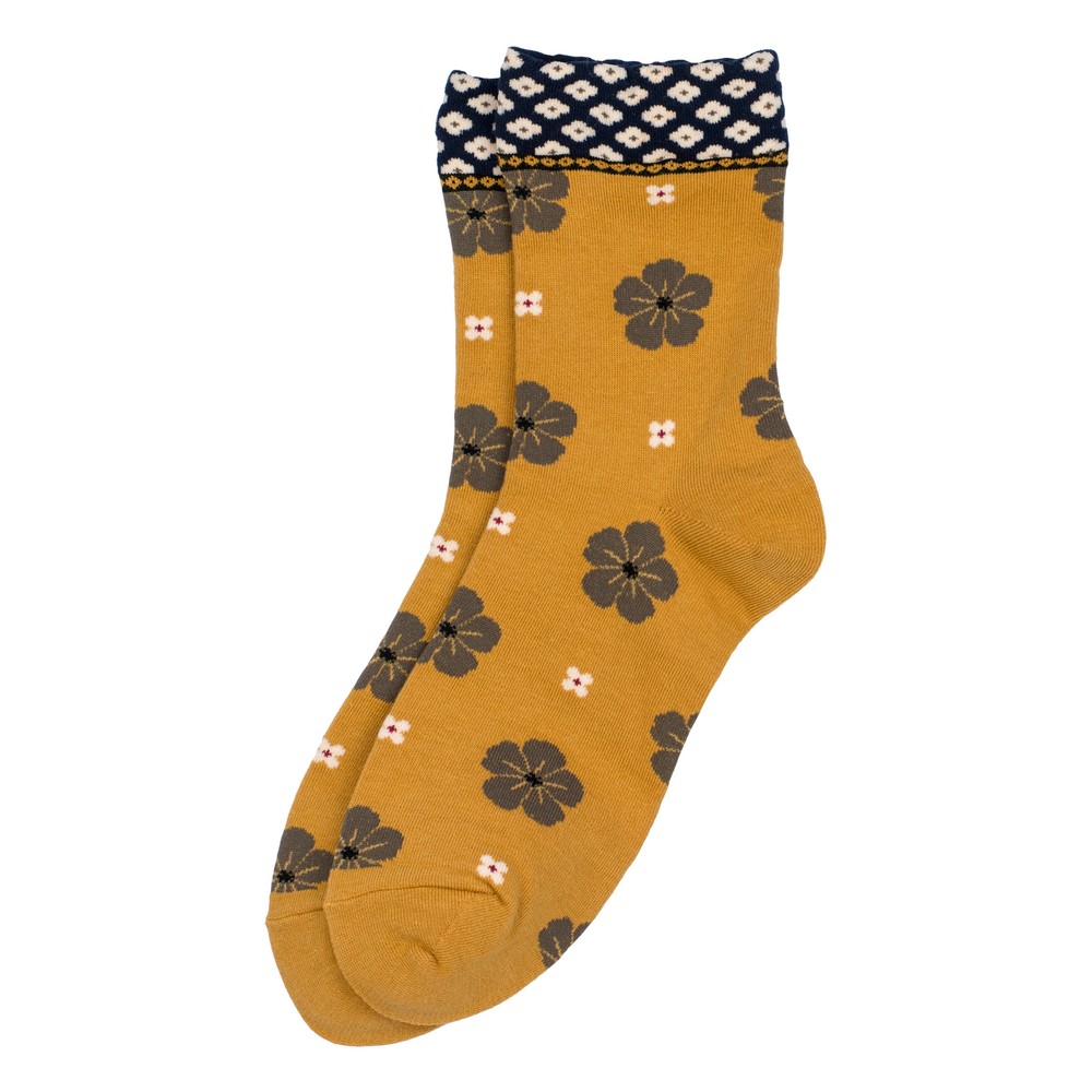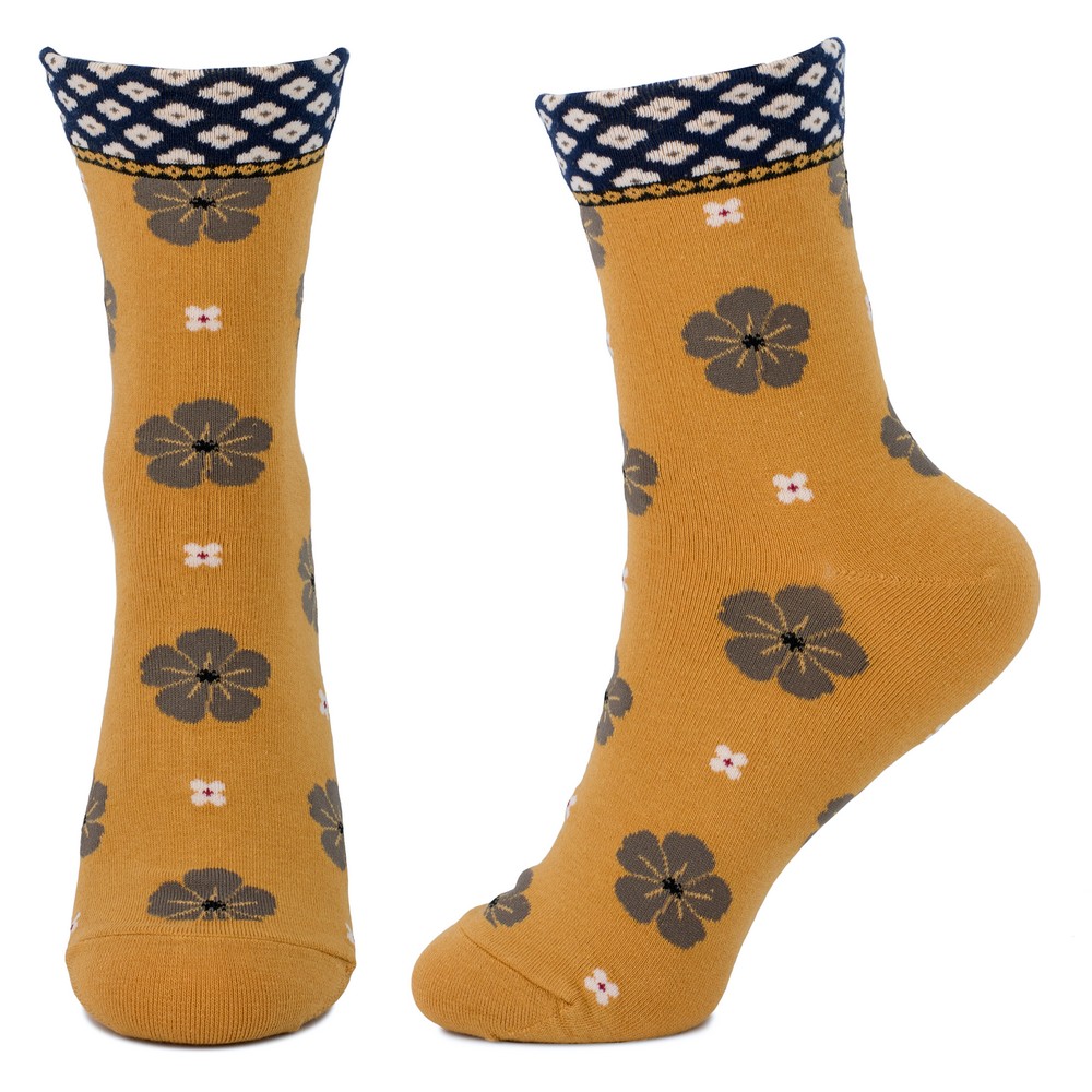 Be the first to review “Socks cotton & spandex oriental flower yellow”
