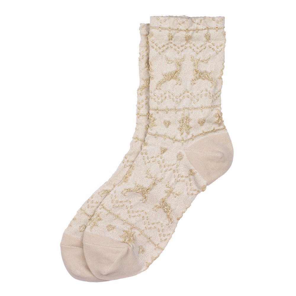 Socks cotton & spandex glitter scandi reindeer off-white