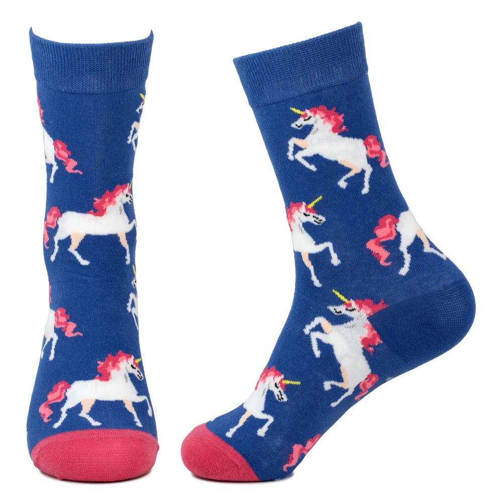 Socks cotton prancing unicorns blue