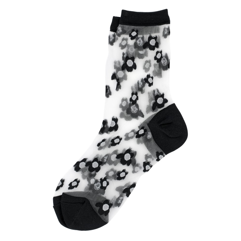 Socks retro flower print sheer black