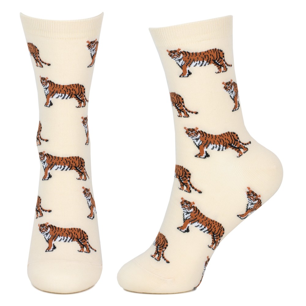 Crafted on a canvas of soft, breathable cream cotton, these socks feature earthy burnt sienna and obsidian accents that bring the big cat motif to life. Whether you are dressing for a professional environment and want a hidden pop of color, or looking for the perfect novelty gift for a “zoo” or “wildlife” fan, these socks offer both style and substance.