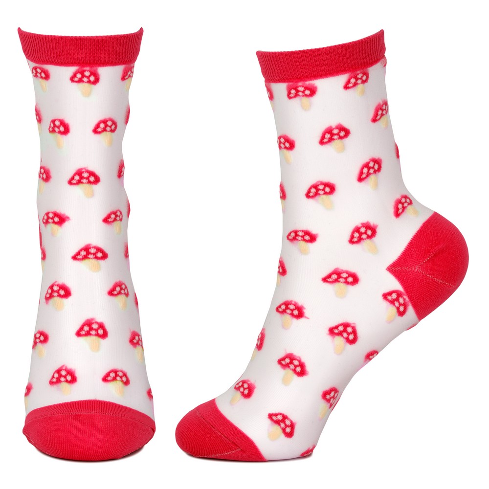 A touch of woodland whimsy! Our sheer mushroom socks are a fun and fashionable choice for nature lovers. The cute mushroom print and bold red colour create a striking and eye-catching design. The sheer fabric adds a touch of elegance and sophistication. A popular choice for those who want to add a touch of fun and personality to their look.