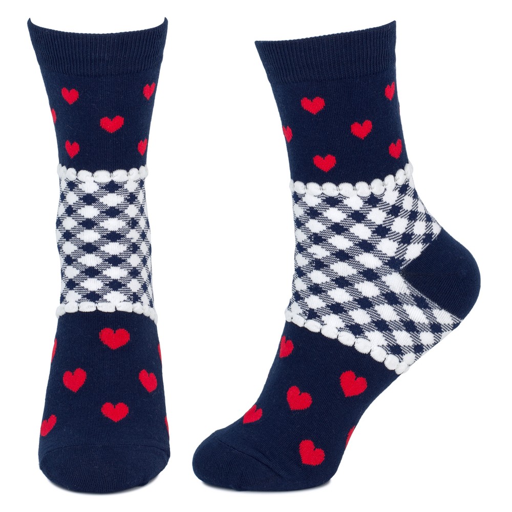 Be the first to review “Socks cotton & spandex check heart navy blue”