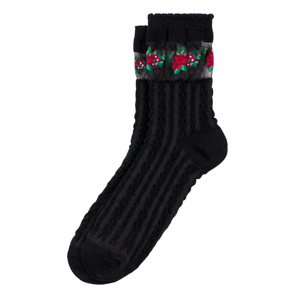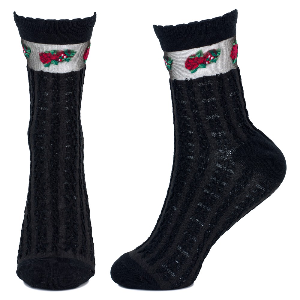 Each pair is a miniature canvas, rendered in a soft, breathable cotton blend that cradles the foot in gentle comfort. The true artistry lies in the delicate sheer cuff, adorned with an array of blossoming roses and verdant foliage. This translucent detail offers a subtle, ethereal quality, allowing the skin to peek through like sunlight filtering through petals, transforming a simple accessory into a wearable piece of botanical art.