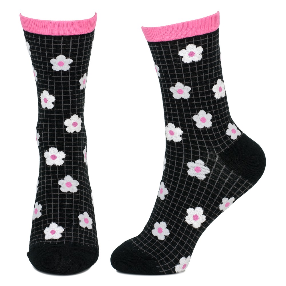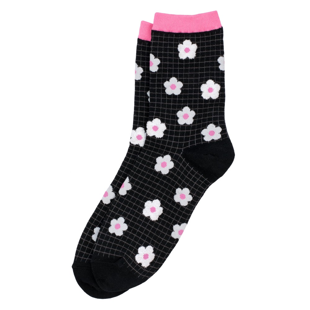 Socks cotton & spandex spring flower grid black