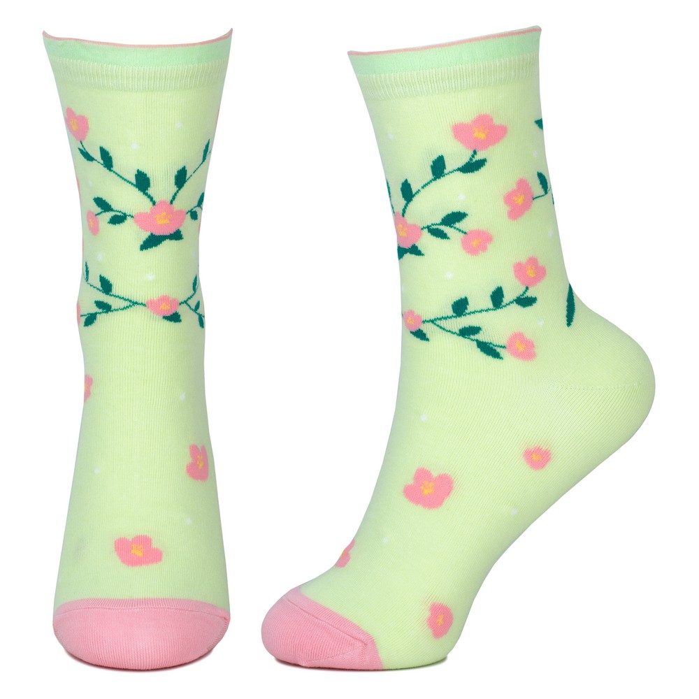 Socks cotton & spandex frilly flower green