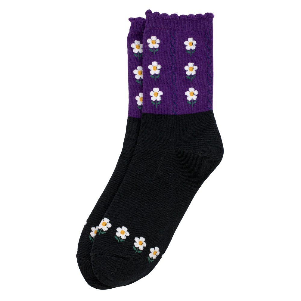 Socks cotton & spandex picot flower black