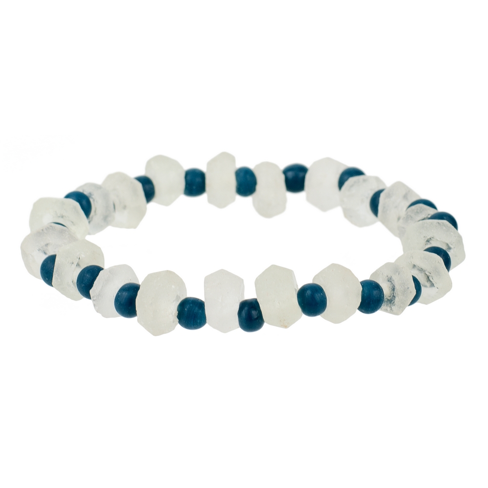 This bracelet is threaded on lycra and will fit wrists between 175 and 190 mm.