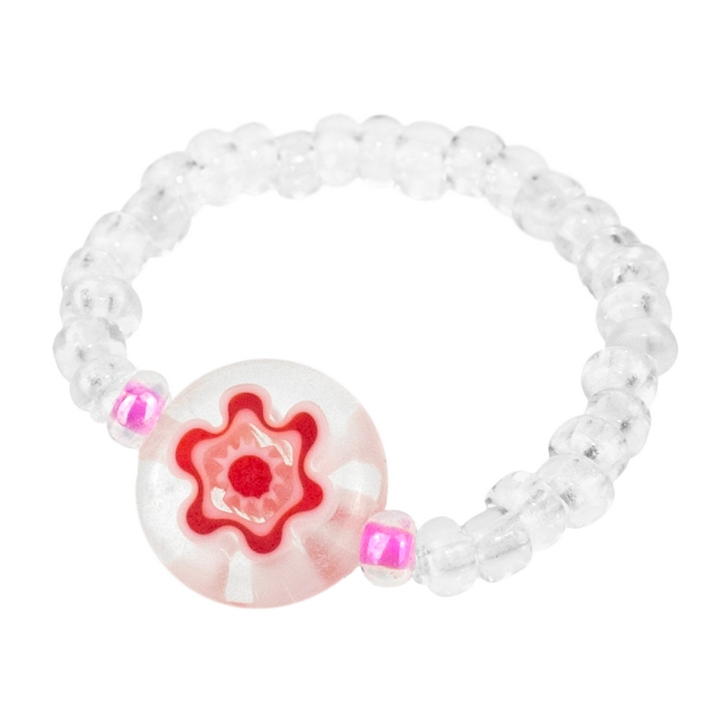 Ring millefiori glass sweet flower white