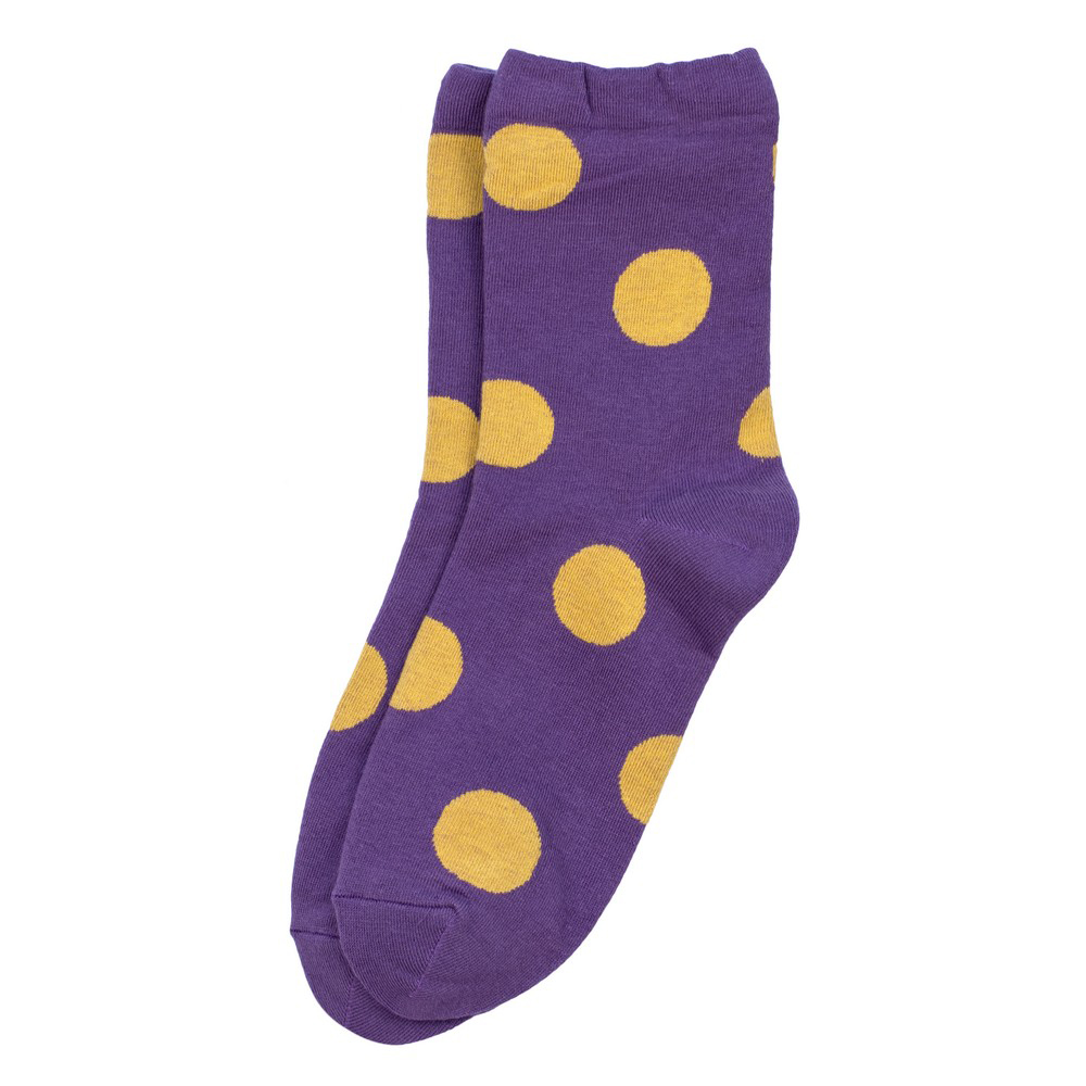 Step into a world of playful patterns with **JOE COOL’s** delightful polka dot socks! These aren’t just any ordinary socks; they’re a burst of retro fun for your feet. Imagine the soft, breathable feel of the cotton blend against your skin, offering all-day comfort. The rich purple hue, adorned with perfectly round golden yellow polka dots, adds a cheerful touch to any ensemble.