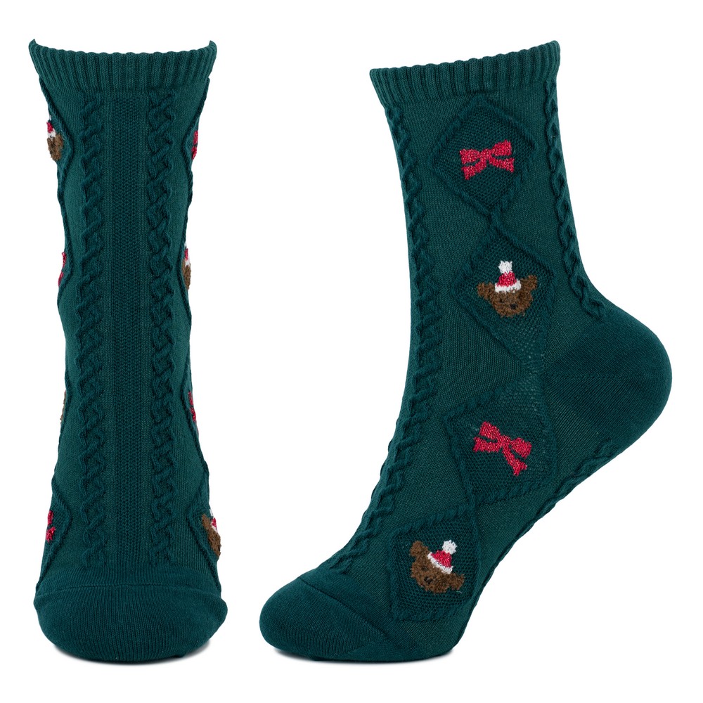 Socks cotton & spandex festive bear green
