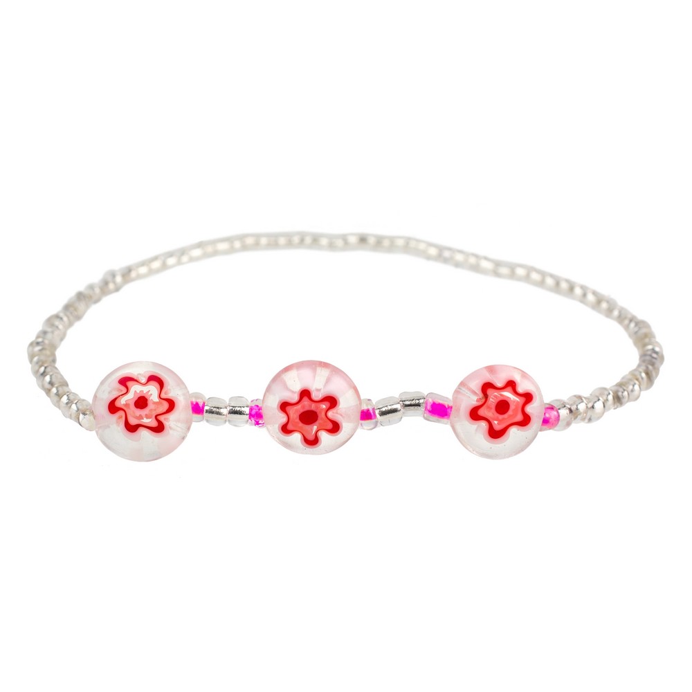 Millefiori glass bracelet with floral motif. Venetian-inspired craftsmanship. Strong appeal for jewellery retailers and gift shops; suitable for bulk orders.